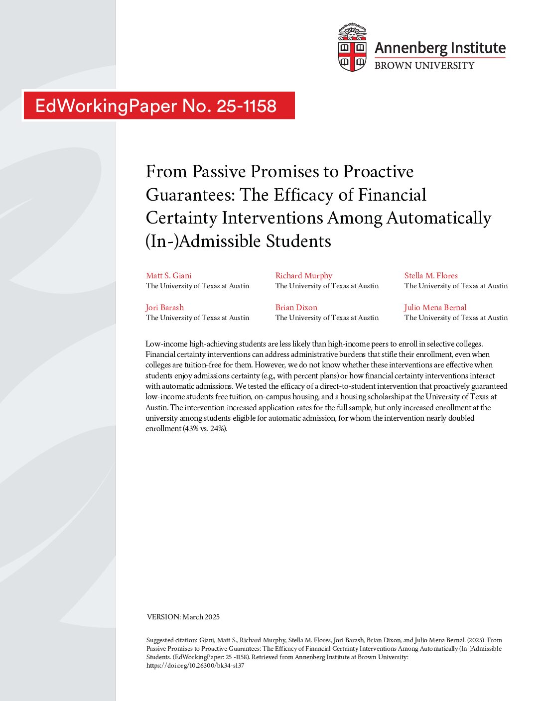 From Passive Promises to Proactive Guarantees: The Efficacy of Financial Certainty Interventions Among Automatically (In-)Admissible Students (2025)